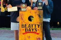 Justin Nguyen of Las Vegas and Lathan “Rebel” Dilger of Pahrump captured the 2025 Beatty Days Festival Adult Cornhole Tournament title on Saturday.