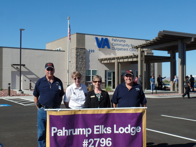 Holding the banner, from left, is Chuck Coleman, Pahrump Elks Lodge veterans chairman; Kate Kubernach, Nevada State Elks Association veterans chair; Peggy Kearns, VA medical central director, and John Loetterle, exalted ruler of Pahrump Elks Lodge.