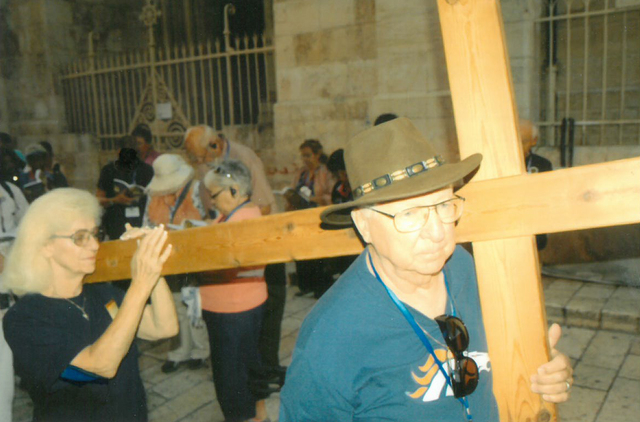“Val and I were blessed to have a turn carrying a much lighter cross towards the place where Jesus was crucified,” she said. “Then we knelt at the sight where he was nailed to the cross and died and this place was very emotional for us. We visited the Church of the Holy Sepulchre where Jesus was crucified and buried. We touched the place where Jesus was laid to rest in his tomb. It really has an everlasting effect and drains you.”