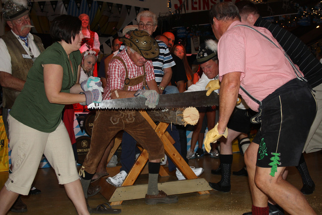 There are competitions, including log sawing, stein carrying and “shoot and yodel” (a game along the lines of beer pong.) Traditional German food is available, including bratwurst, knockwurst and other sausages, but you can simply opt for a hamburger or hot dog.
