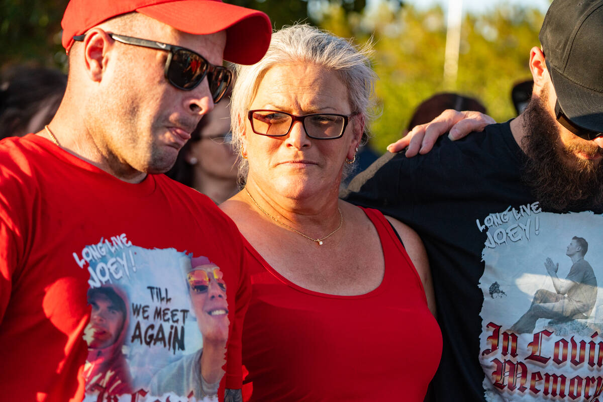 As Mari Ausiello surveyed the crowd of over 200 people assembled at Ian Deutch Memorial Park, at the spot where less than a week ago, her 22-year-old son, Joey Perry, was shot to death, she commented through tears in a raspy voice, “A lot of these people are just family, extended family and friends.”