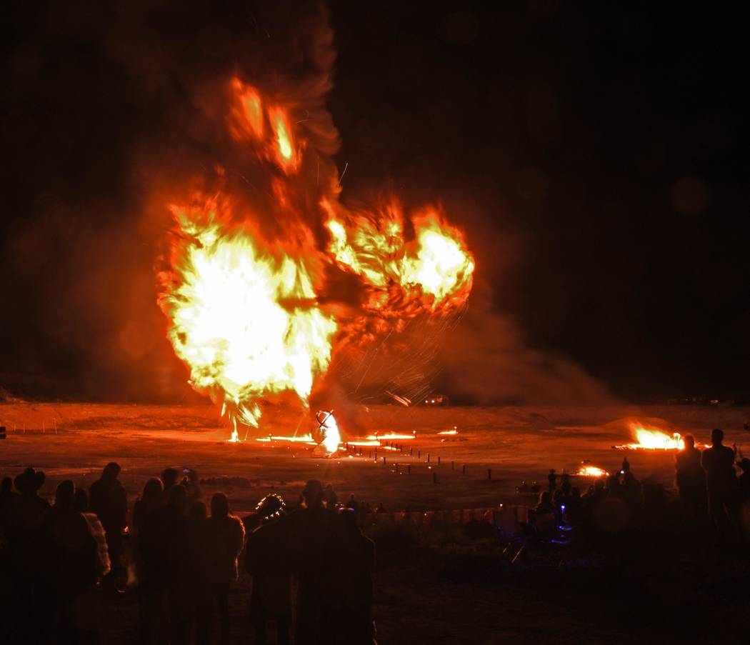 A spectacular fireworks display also accompanies the burn and includes impressive aerial fireballs.