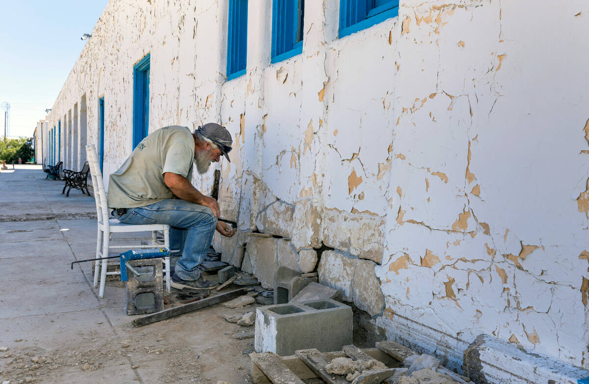 Jesse Cox, 63, lives in a cottage behind the hotel and does maintenance work there. He is Death Valley Junction’s only full-time resident, having lived there since 2010.