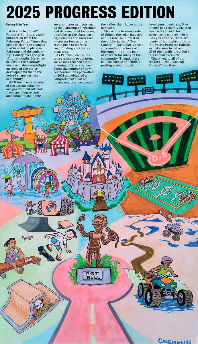 This Friday, April 18, our readers will be presented with one of the Pahrump Valley Times’ special annual publications, the 2025 Progress Edition. A “year-in-review” of sorts, the Progress Edition rehashes the major changes that have occurred over the past year or so, touching on subjects ranging from business to housing to government activities and more.