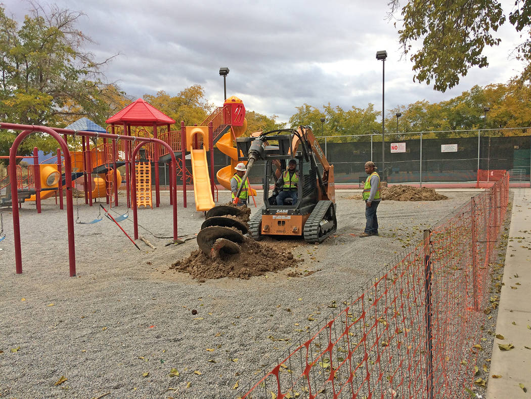Ian Deutch Memorial Park’s playground was closed for construction earlier this month on Nov. 13 and work crews with USA Shade and Fabric Structures, the contractor for the project, were busy over the following two weeks preparing the foundations that will hold the brand new shade structures aloft.