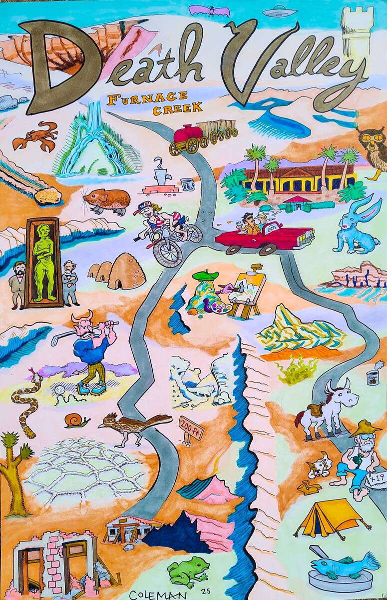 Eric Coleman is an artist based in Pahrump. He is the cartoonist for the Pahrump Valley Times and Tonopah Times-Bonanza. Follow him on his YouTube Chanel The Traveling Cartoonist at https://tinyurl.com/2swrkmpm. For map information, contact him at ericjamescoleman@gmail.com.