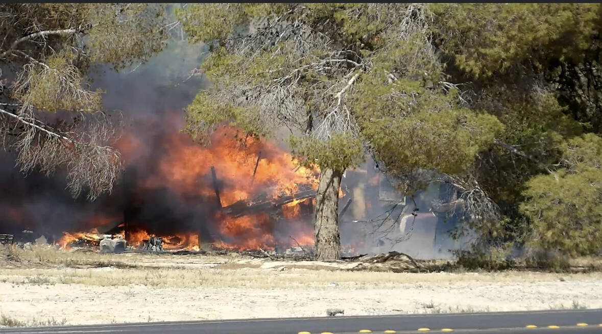 According to Nye County dispatch traffic, the fire extended to several adjacent residential properties from a propane source.