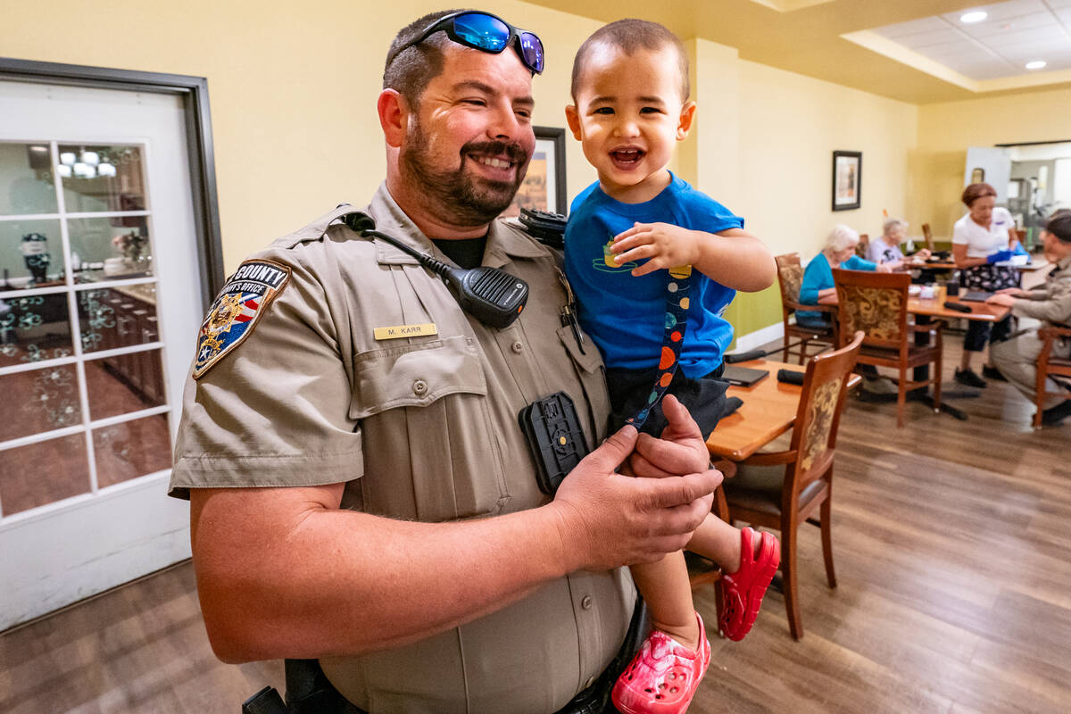 The Nye County Sheriff’s Offce (NCSO) was invited to spend this past Thursday morning, July 24, having breakfast and conversation with the residents of Inspirations Senior Living. This is the third time Sheriff Joe McGill and his deputies have visited the facility, with NCSO providing the food the last two times.