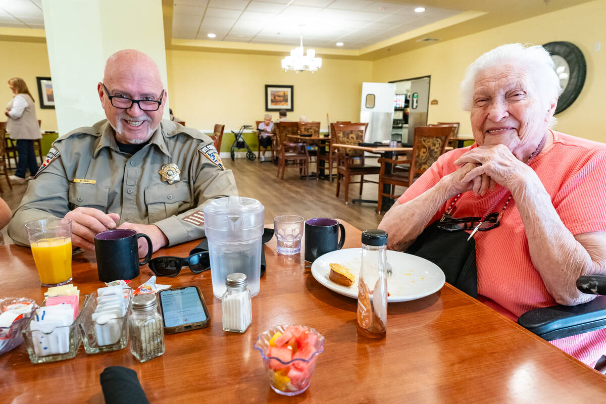 When asked what she thought about having the NCSO join her for breakfast, Juanita Gabbard stated, “I voted for Joe and I like it. I like to talk to him. We don’t get outside very often, you know, and then we get information from you guys [NCSO].”