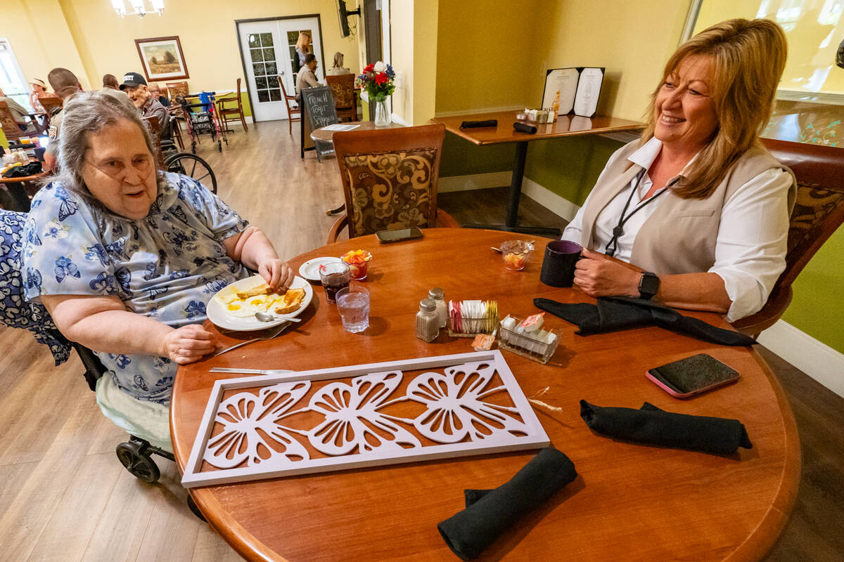 Roberta “Bobbie” Osako, the executive director at Inspirations, invited the NCSO to breakfast because her residents love the engagement and it brightens their day. She also added, “It’s nice to give back to them [NCSO] too. Provide a good hearty breakfast, and go out there and fight crime.”