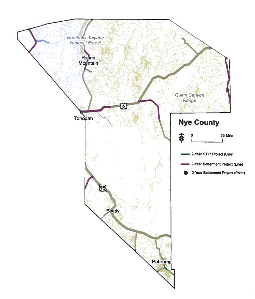 There are also two studies underway that impact Nye County, including one centered on the Johnny Curve and another for the Highway 160 and Highway 159 corridor, known as the Red Rock and Blue Diamond corridor.