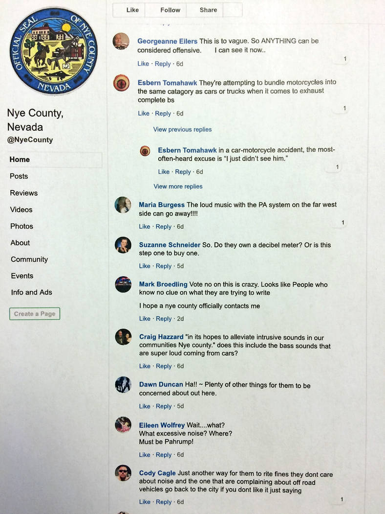 “The planning department plans to request rejection of proposed Bill No. 2019-02 entitled: A Bill Proposing to Amend Nye County Code Title 9 Public Peace, Morals and Welfare by Adding Chapter 9.30 NOISE CONTROL,” an announcement posted to the county’s website on Feb. 15 read.