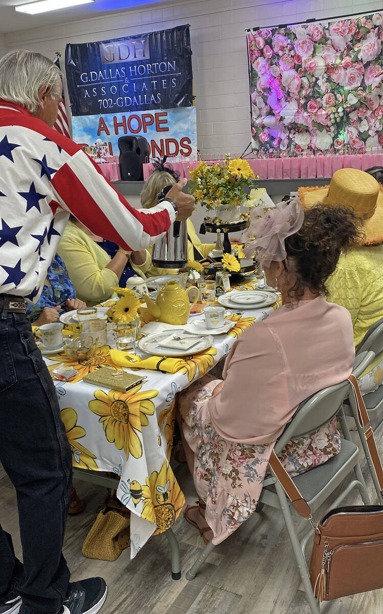 Taking place May 4 inside the Bob Ruud Community Center, the Women’s Tea is a yearly production of the Pahrump Valley Republican Women with a fairly straightforward purpose – fostering community fellowship while generating funds for charitable causes. And though the total amount raised at this year’s event has not yet been calculated, organizers said they expect it to amount to an impressive haul, thanks to the sponsorship of A Hope Bail Bonds and G. Dallas Horton and Associates.