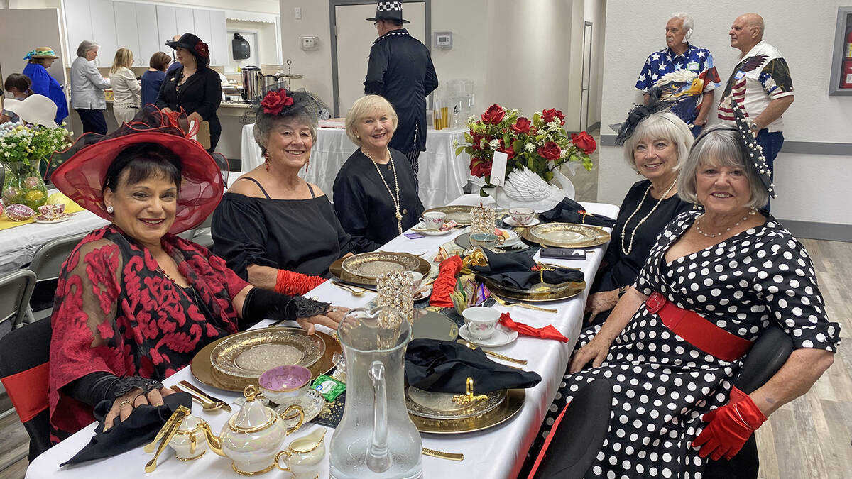 “This year’s tea was absolutely magnificent,” Sharon Sadler, who took point on the event, raved after all of the fun was said and done. “We had 120 guests, not including all of our wonderful volunteer ‘man servants’ who served hot water and bused tables - nor our volunteer kitchen helpers who blessed us with their hard work! I couldn’t do it without them. And the Bob Ruud Center was absolutely beautiful with all the gorgeous tea tables that filled the room.”