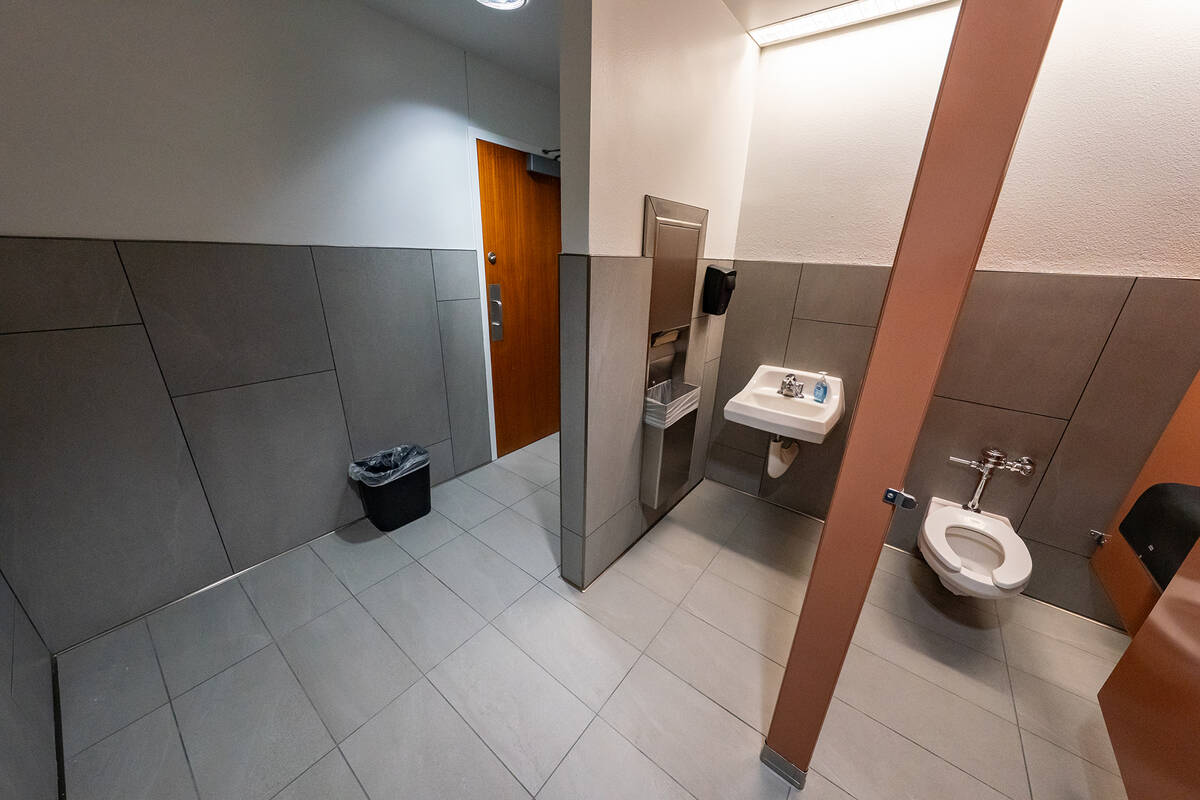 The project to refresh and repair the 24-year-old building’s threadbare carpet, scuffed walls, shabby restrooms and crumbling furnishings began in late November. It took a few months to remove the books from the building and properly store them, library director Kim Thomas says, “As the books were being boxed, we had to label the shelves, label the box, make sure that everything went in a specific order.”