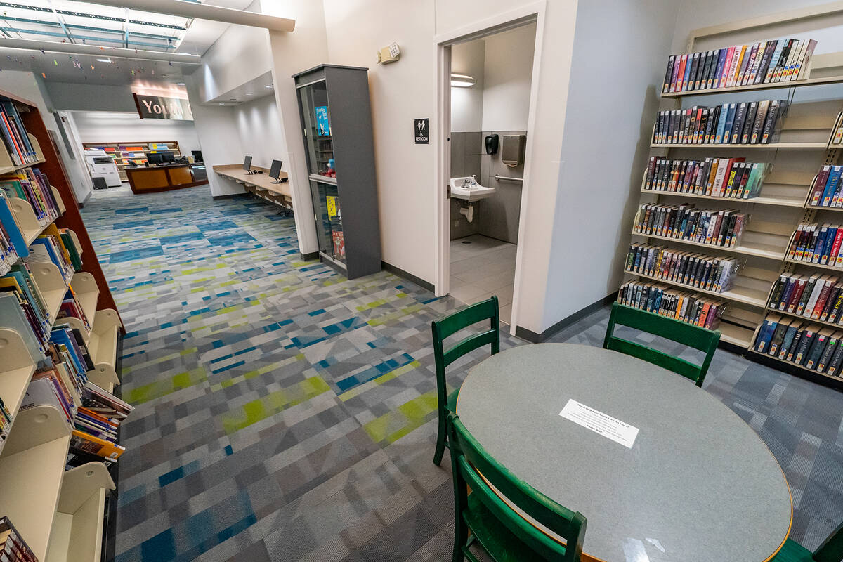 One of the most significant changes wasn’t strictly cosmetic. Thomas is transforming a little-used reading nook near the entrance, which used to be a snack bar area, into a teen and young adult area. “I think that solves a few problems by just moving it. Maybe teens will hang out in the library more when they have their own little separate area to spend time in,” says Thomas.