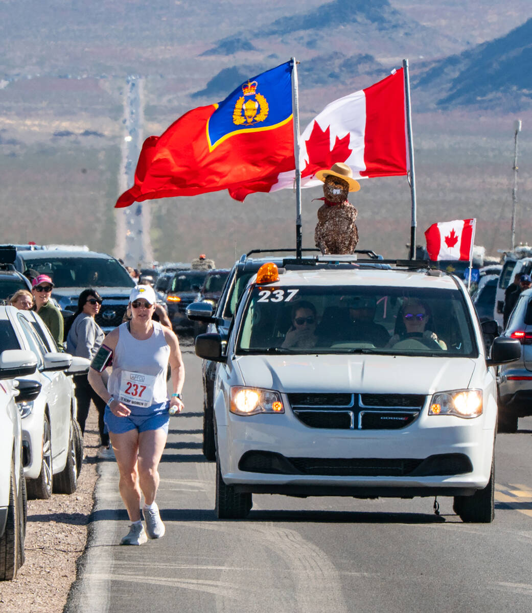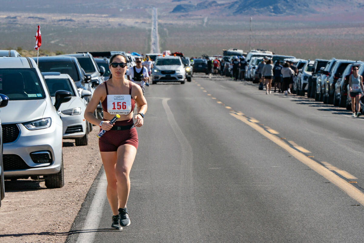 This decades-old, 120-mile-long race is broken down into 20 stages, requiring staging stations at intervals of roughly every six miles, where runners can pass their batons onto the next team member before taking some time to hydrate and catch their breath. Pahrump marks the halfway point of the race and runners, tailed by their pace cars, began arriving in the valley the afternoon of Saturday, April 5 and continued on their way toward the Spring Mountains well into the late-night hours. There were several staging stations set up in the valley and each was manned by eager volunteers out to show their support, ensuring the competing teams were all welcomed with enthusiasm.