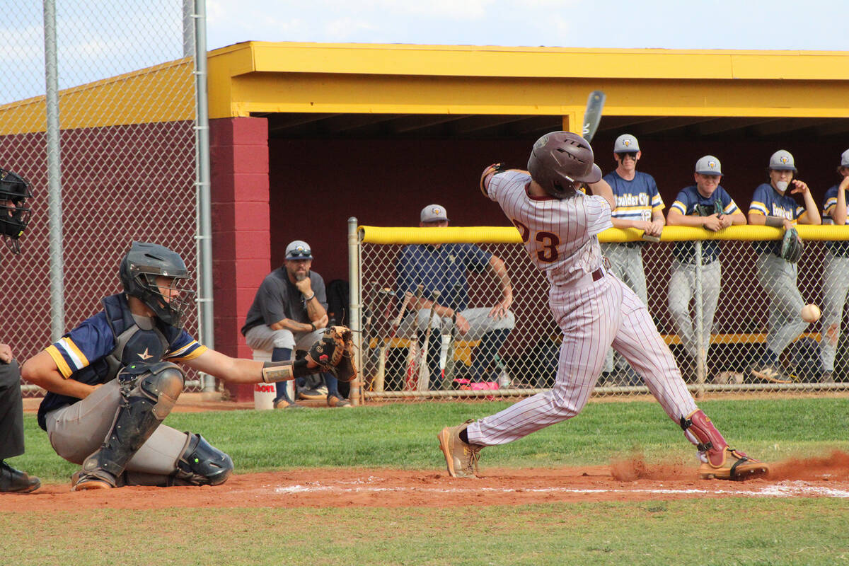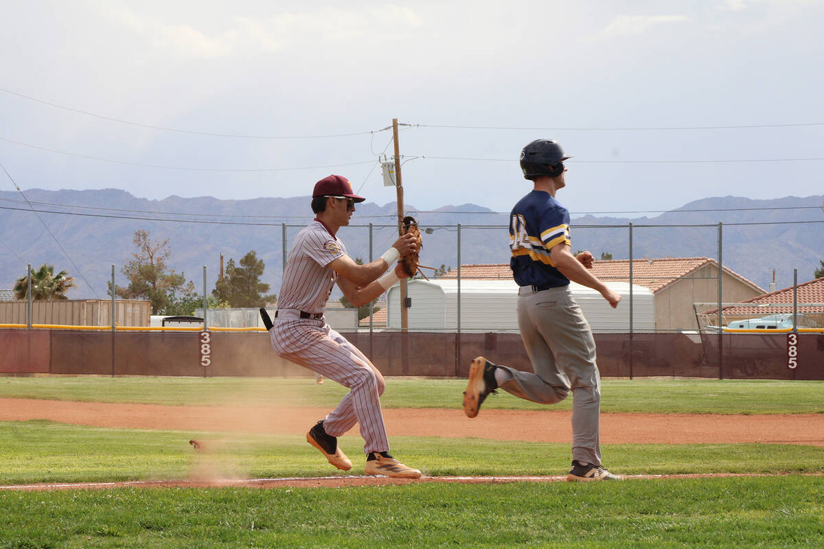 Dropping the second game of the split doubleheader 5-4, Boulder City struck luck late with two outs in the top of the seventh as Eagles sophomore Gauge Rhodes roped a deep shot past the diving outstretched glove of junior Vinny Whitney in centerfield to score the go-ahead run across. With the victory, the Eagles clinched first place in the 3A South Mountain League.