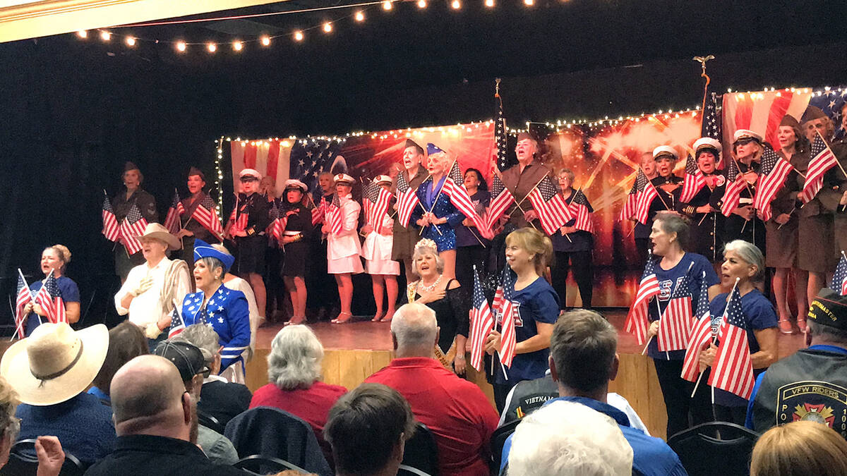 Before the final dance of the evening, one dedicated to honoring the branches of the U.S. Military, VFW Auxiliary President Bonnie Darrell was asked to step forward and give the audience an overview of the true purpose behind the USO Show.