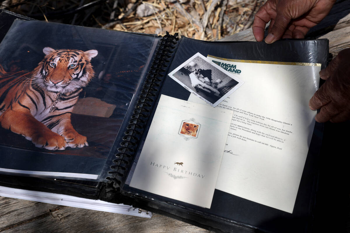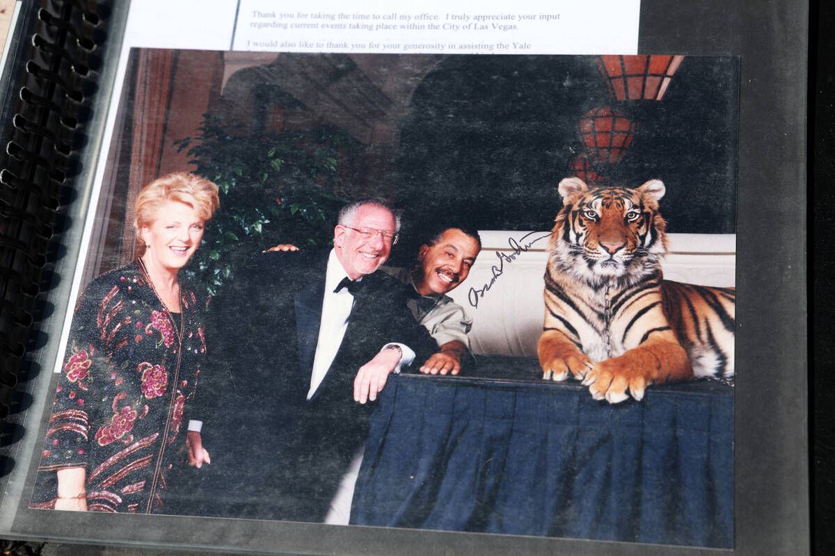 A Pahrump resident for decades, Mitchell told the Review-Journal he’s kept exotic animals with him for nearly the entirety of his tenure living in Southern Nevada. And from photographs with Las Vegas stalwarts like former mayors Oscar and Carolyn Goodman to letters from Strip resort operators thanking him for his appearances, Mitchell’s history of handling lions, tigers, ligers and other exotics appears to be well-documented.