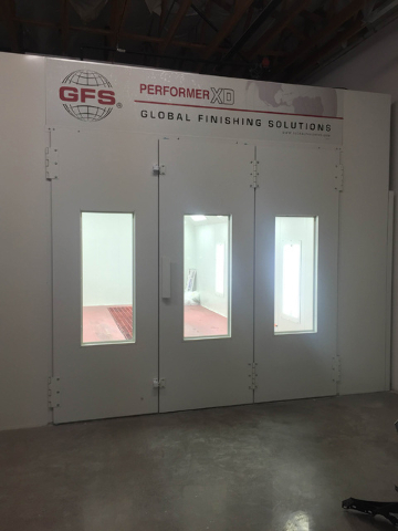 Included in the shop is a downdraft paint booth, an N4 pull system and a laser majoring system that can measure a car throughout a repair to get it back to exact factory specifications, and a spot welder.