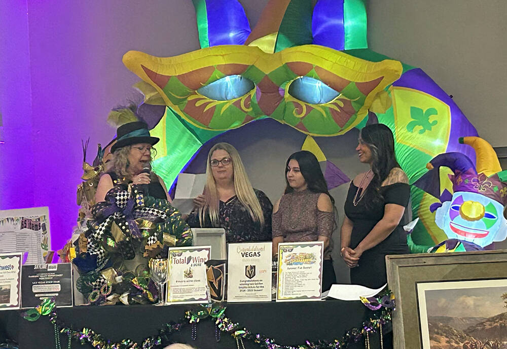 “We are extraordinarily grateful to our members, the community and beyond for such unwavering support. Of course, we couldn’t put on a special event like this without the help of our photographer, Todd and Elena Arms, ‘Your Hometown Photographers’ and Ski Censke, our auctioneer, as well as our Tarot Card reader, Breeana Peterson and the Nugget staff. Our wonderful community of sponsors, donors and benefactors made this year’s Mardi Gras a huge success. Equally so, from the endless hours spent planning to their financial contributions, our members’ commitment was exceptional. A heartfelt thank-you to everyone for such tremendous generosity, enabling us to increase our educational assistance to girls and women here in Pahrump,” Davis concluded.