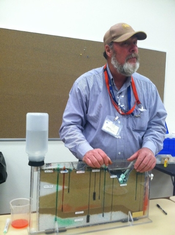 Contaminated water from the Frenchman Flat area of the site is traveling at a very slow rate, about three feet per year, toward the Amargosa Valley. At that rate of speed, it would take a “very, very long time” for contaminated water to reach Amargosa, according to Department of Energy Geologist Bill Wilborn.