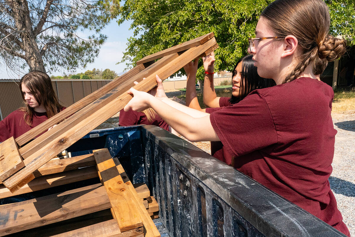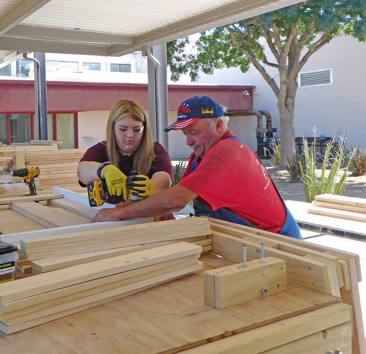 Murzyn invited the Pahrump Valley Times to one of the bed-building days, hosted at the Pahrump Valley High School. Campus Monitor Devin Petersen was on hand to supervise as the 11 teens operated a wide array of power tools, turning plain lumber into sturdy bed frames.
