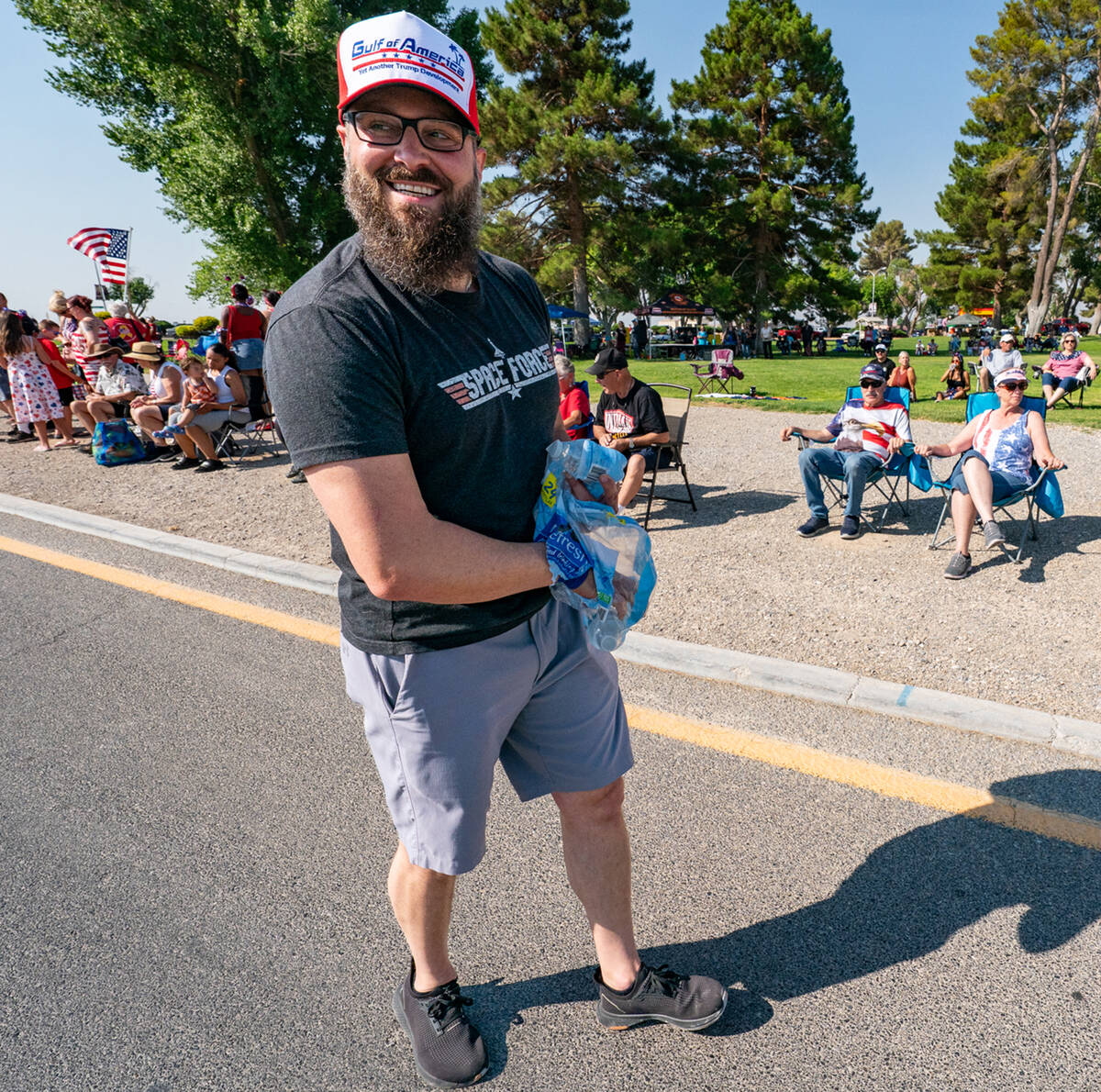 “Fourth of July was a great day. The weather was much better than last year, not as hot with a nice breeze. Lots of people came out to watch the parade and stay for the Family Fun Day event in the Calvada Eye,” Wright-Smith raved to the Pahrump Valley Times. “We had many activities happening after the parade. We had our partner Pahrump Disability Outreach Program bring their bull ride, bounce house and of course, their train. The Pahrump Gunfighters brought their jail, tattoos, face painting and popsicles. We also had cornhole, our famous watermelon-eating contest and our special water balloon fight with the Nye County Sheriff’s Office. Everyone had a great afternoon of fun.”