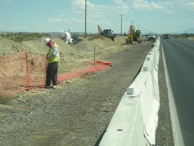 Months after concrete dividers were set up along Highway 160 near Mesquite Avenue, Utilities Inc. of Central Nevada began the Highway 160 trench backfill project July 28.