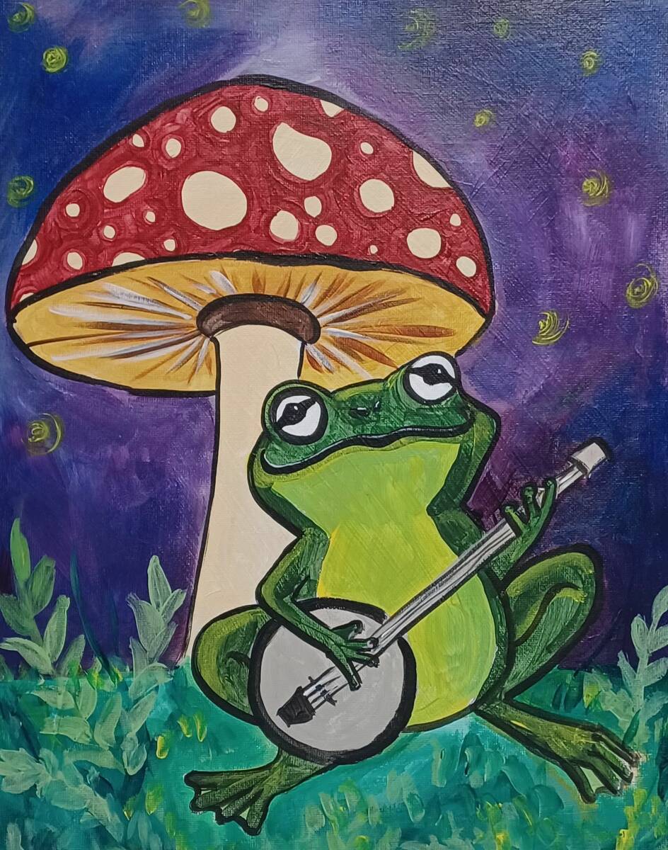 Cocktails and Canvas with Laurie McCaslin at the Pahrump Senior Center begins at 1 p.m. and runs until 4 p.m. Paint a cute froggy under a toadstool, playing a banjo. All ages welcome; no experience necessary. $25 cash or check; pay when you arrive. Phone or text Laurie at 775-209-6200 to reserve your spot. 1370 W. Basin.