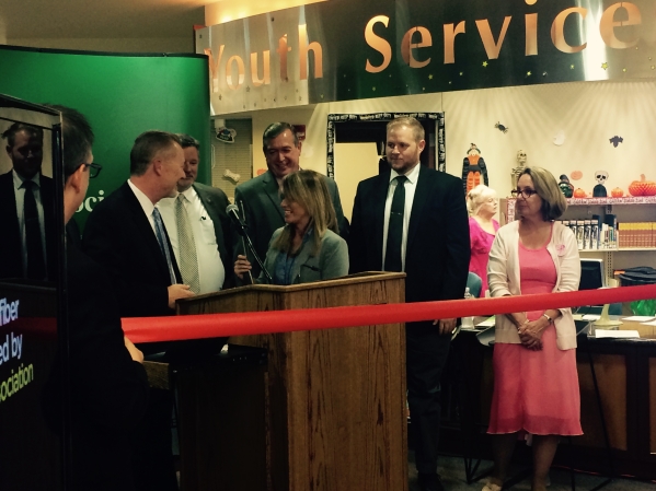 During Wednesday's ribbon-cutting ceremony, attended by a score of local and state dignitaries, Valley Electric Association launched its optical fiber broadband communications service at the Pahrump Community Library.