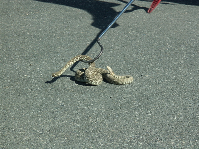 “The calmer snakes, I’ll take five or ten miles outside the community and release them. They are all over the valley, but this year we have seen more Mojaves. Last year, we saw a lot of Sidewinders in the area.”