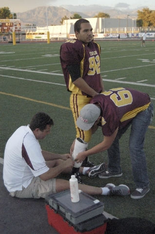 “When I first started doing games for Pahrump I was probably on the field seven to 10 times a game,” Taylor said. “This was back in 3-A. Last year I was hardly out there. At first I was on the field for cramps. ‘Seriously,’ I would think, ‘Go to the sideline and fix the cramp, but don’t lay on the field and act like you’re dying.’
