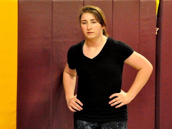 "She is learning the wrestling and is not as confident," the coach said. "When we go 100 percent, she is figuring out what pain is. She has never really conditioned before. I call her on it and make her work. I can see she is frustrated a bit because in wrestling she is not at the top like she is in karate."