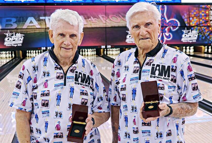 Commemorating the event, the brothers were gifted a plaque and diamond lapel pin while donning custom I AM bowling shirts that reflected different photos of past Open Championship events.