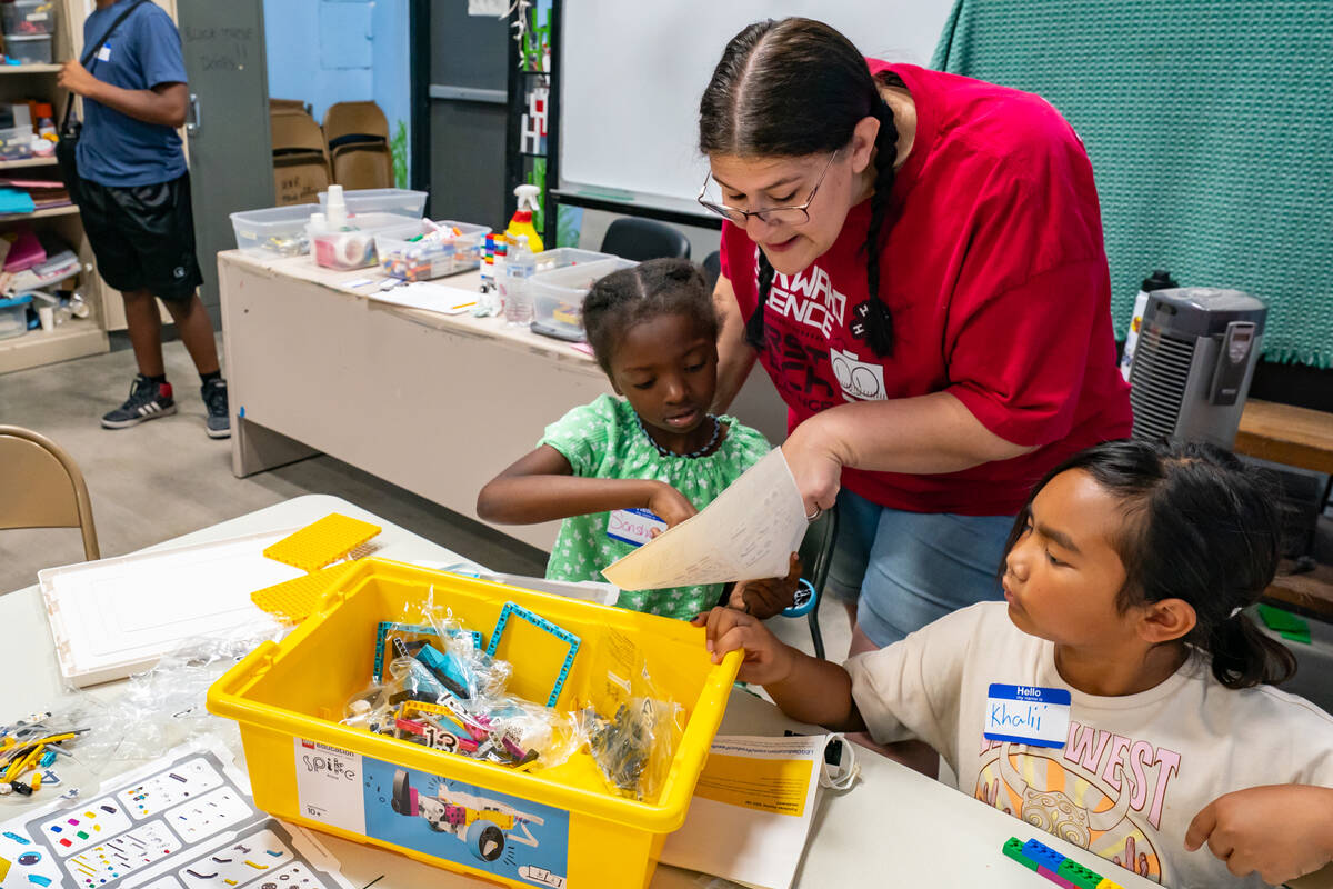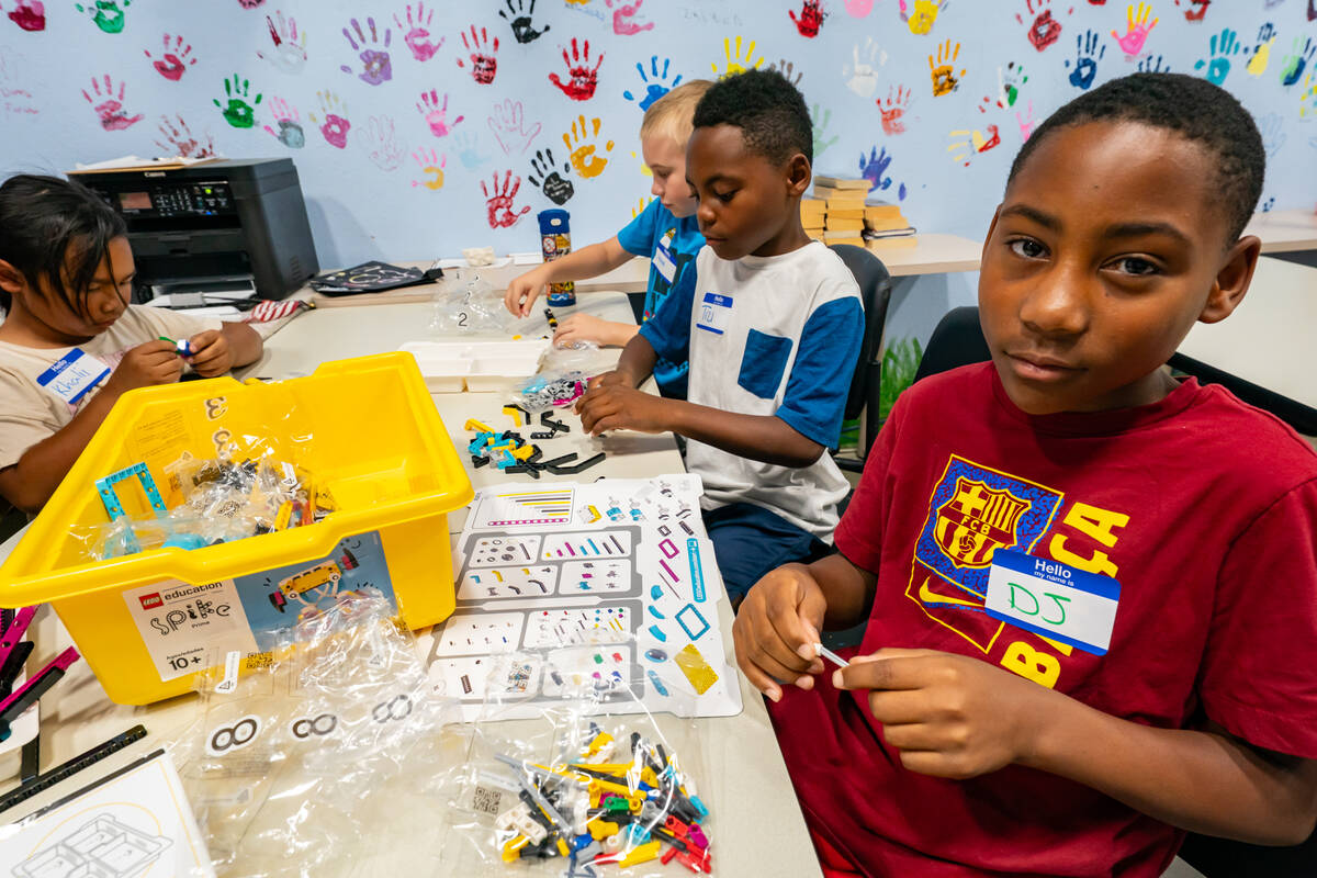 “The first week, we worked with the SPIKE LEGO® robotics systems and they built little mini robots. Last week, we did three more science-y things where we did shaving cream with food coloring and water to see the different effects of how the food coloring worked with the watercolor,” Riendeau said. “We also tried to see who could get the biggest tower constructed out of marshmallows and spaghetti noodles.”