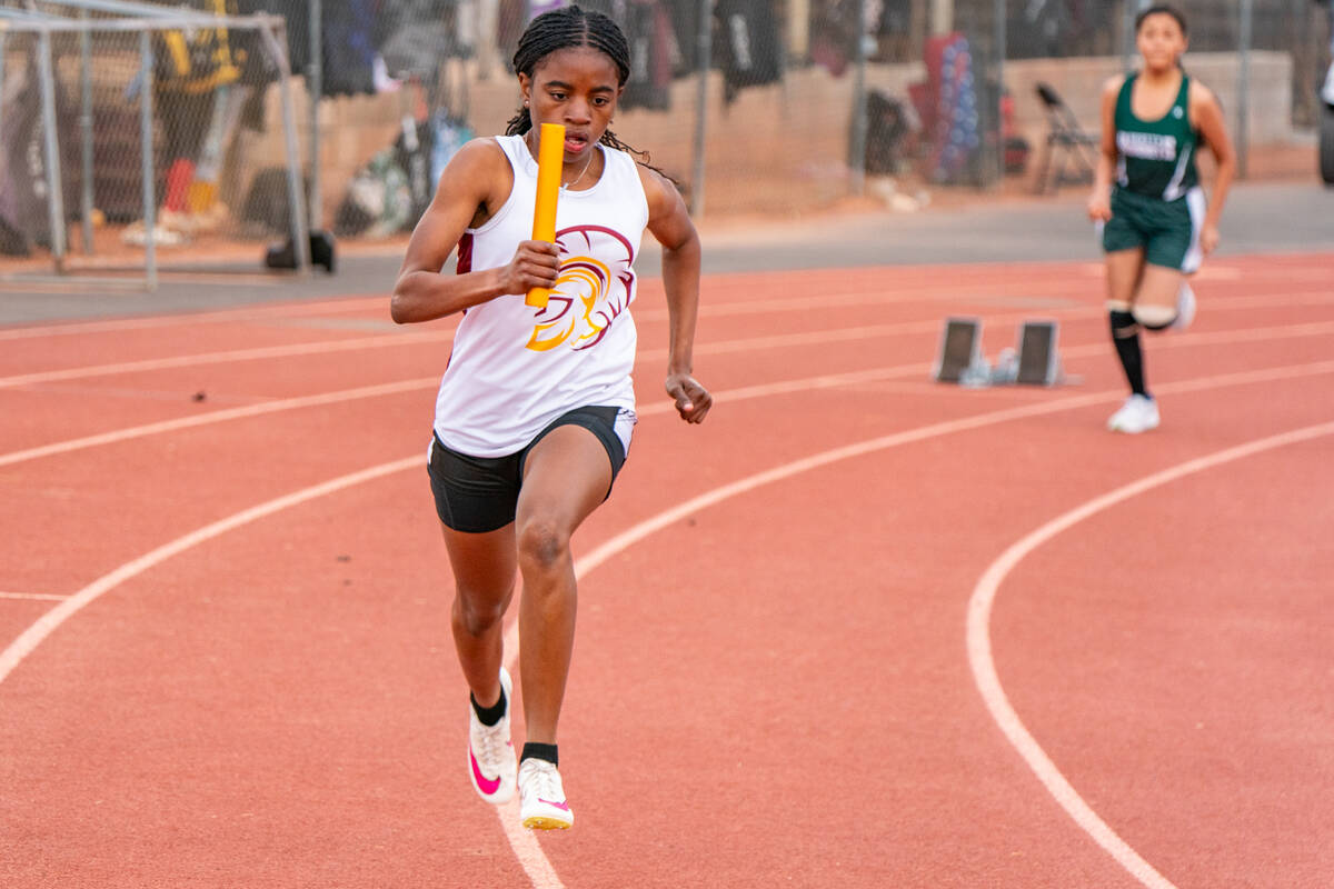 The Trojans girls team also had runners place first in the 800-meter, 1,600-meter, and 3,200-meter events. Sophomore Kaylan Robinson finished first in both the 800-meter and 1,600-meter events, with a mark time of 3:02.11 in the 800-meter and 6:48.14 in the 1,600-meter.