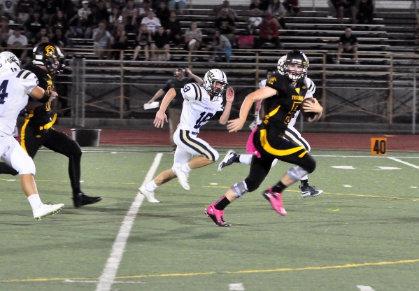 Pahrump took over on the Grizzlies' 43-yard line with 2:41 left in the half. The Trojans took the ball into the red zone on a pass from Milk to Parker Hart, which was a good 25-yard reception.