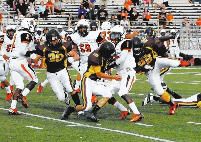 Pahrump’s running game took a bit to warm up, but when it did it went full bore and Chaparral could not stop it. The Trojans line dominated the middle late in the game allowing the Trojans to march down the field at will.